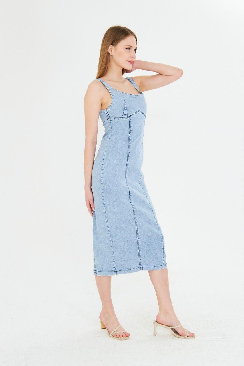 P-00002993 Askılı Arkası Yırtmaç Kadın Jean Elbise