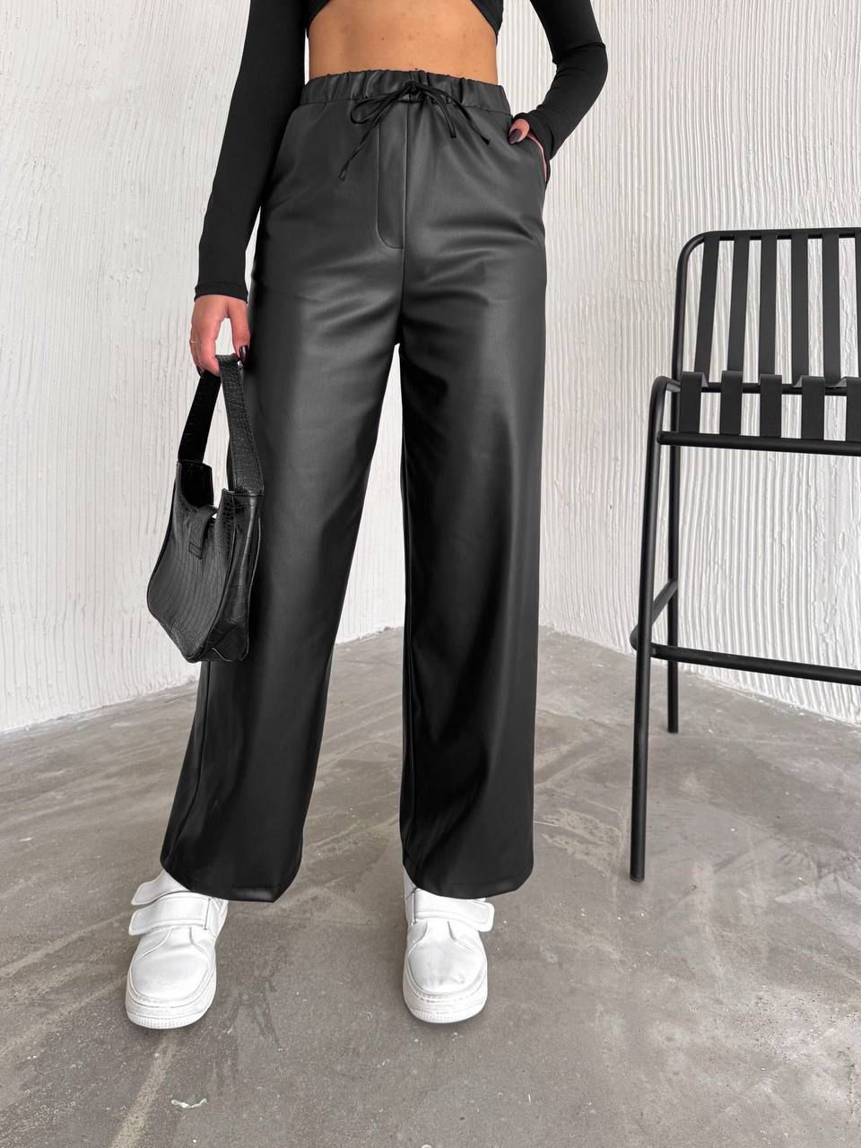 Beli Lastikli Salaş Kadın Deri Pantolon